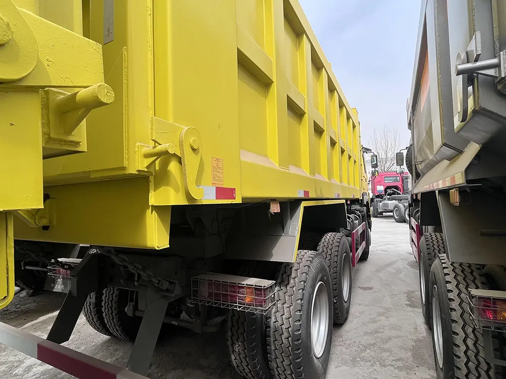 Una característica destacada de este volquete Euro 2 es su doble luz de advertencia (montados en el techo de la cabina), que proporcionan una gran visibilidad en zonas de trabajo complejas (como obras o rutas de transporte muy transitadas), mejorando eficazmente la seguridad operativa al alertar a los vehículos y al personal circundantes. La caja de carga mide 8600×2300×1500 mm, lo que ofrece un amplio espacio para materiales a granel como arena, grava o residuos de la construcción. El vehículo también cuenta con configuraciones centradas en el usuario: el sistema de dirección asistida hidráulica ZF 8118 (con una relación de asistencia de 2,2-26,2:1) garantiza un manejo ligero y preciso incluso con cargas pesadas; la cabina de control hacia delante totalmente de acero HW76 viene con una función de inclinación hidráulica de 55°, un sistema limpiaparabrisas de 2 brazos y otras características de confort para reducir la fatiga del conductor durante turnos largos.