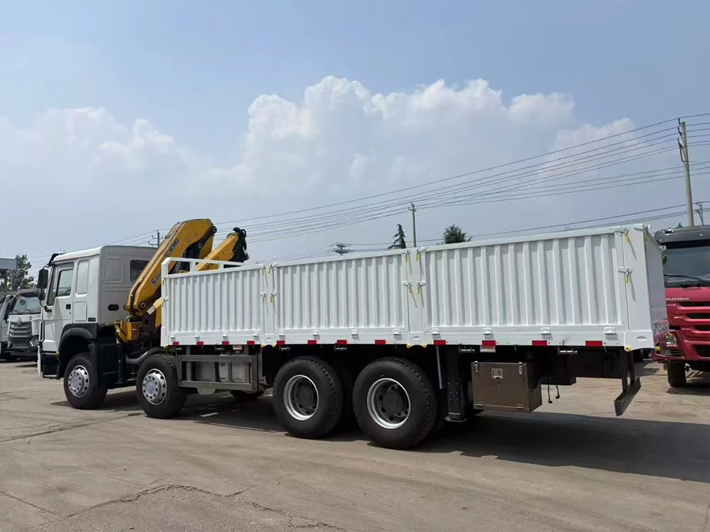 El camión de carga Howo 8×4 con grúa de brazo plegable XCMG de 8 toneladas puede ser utilizado para la instalación y manipulación de equipos y la construcción de ingeniería municipal y de energía.
