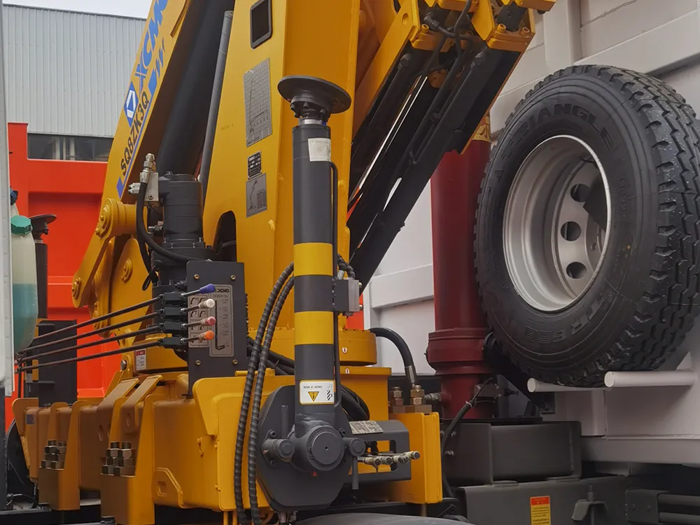 | Corps de la grue | Marque : XCMG ; Type : Flèche d'attelage ; Nombre de sections de la flèche : Flèche pliante hydraulique à 3 sections ; Rayon de travail maximum : 8,5 m ; Hauteur de levage maximum : Approx. 10 m ; Méthode d'opération : Levier de commande manuel ; Fonction : Chargement et déchargement auxiliaires (pas d'équipement principal) |