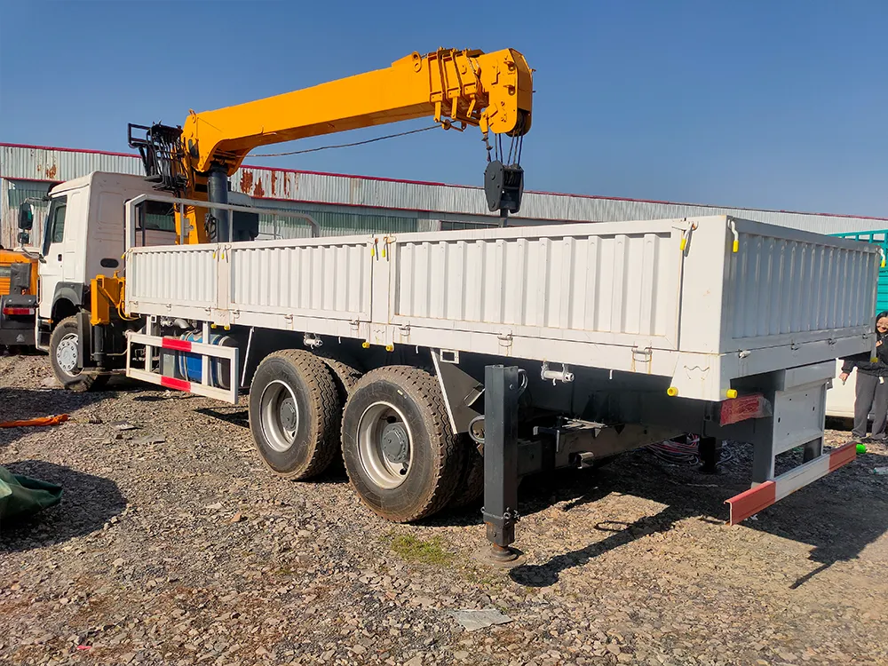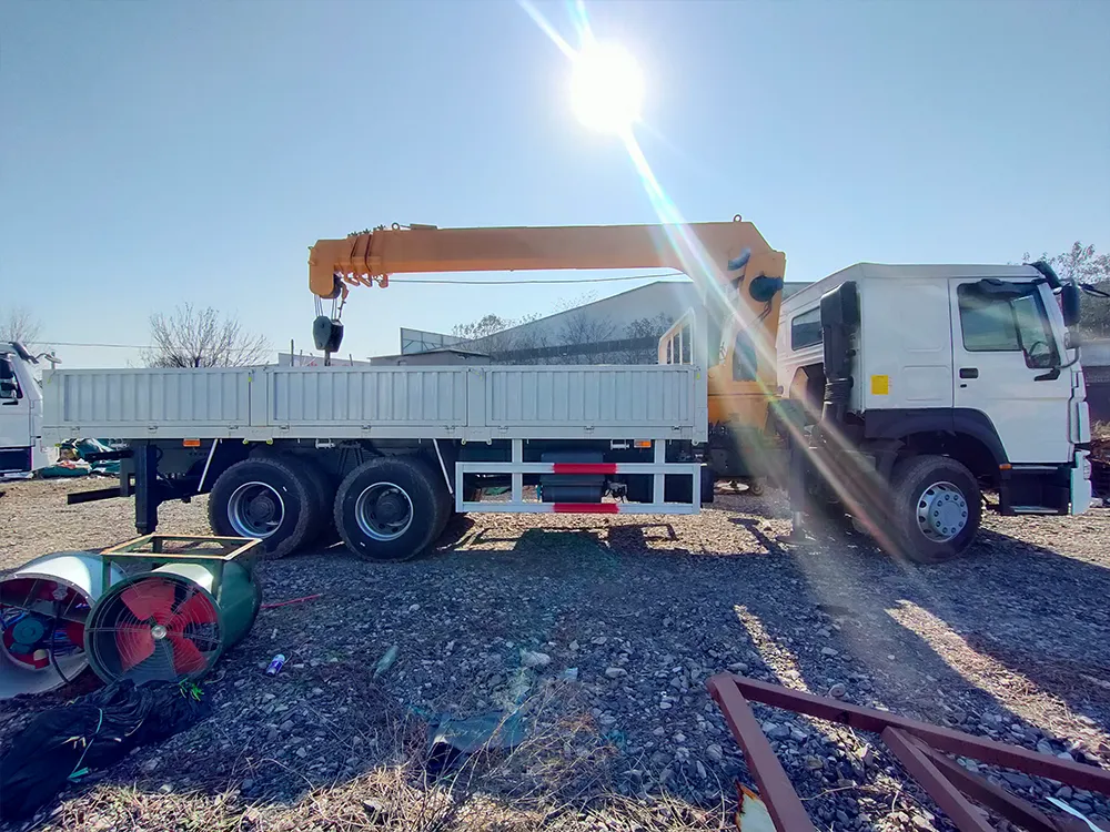 This equipment excels in environments where mobility and self-sufficiency are critical. The robust 6×4 Howo chassis provides excellent stability and off-road capability, enabling access to work sites with poor road conditions; meanwhile, the 371 hp engine provides ample power for both driving and crane operation. The integrated hydraulic crane, typically mounted behind the cab, boasts significant lifting capacity and working radius, featuring a telescopic boom, 360-degree slewing, and precise load control.
