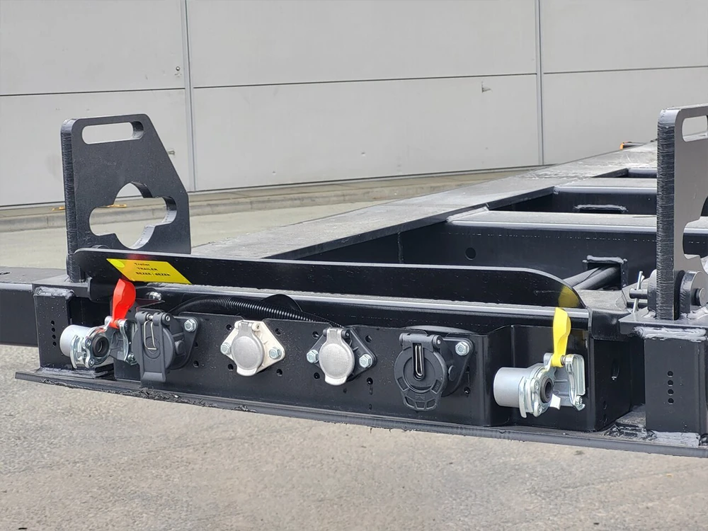 The Used 3 Axle Container Trailer is equipped with a standardized lock system. The frame is equipped with a twist lock that meets international standards, which can quickly and firmly lock the four bottom corners of the container on the trailer to ensure the safety of transportation.