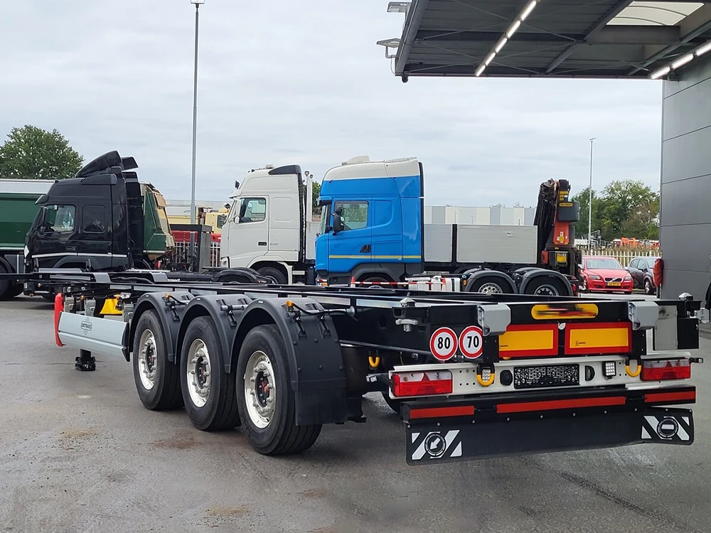 And the reasonable distribution of loads on the three axles can not only meet the regulatory requirements for the maximum total mass (usually corresponding to a fully loaded 40-foot or two 20-foot containers), but also provide better driving stability.