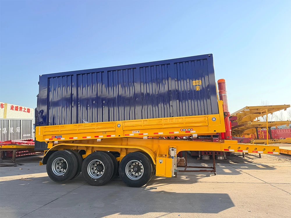 O reboque de contentor basculante de 3 eixos é projetado principalmente para terminar o transporte de alta eficiência ponto a ponto. Ele pode realizar trabalhos de carga e descarga de alta velocidade sem qualquer equipamento extra. Da fábrica diretamente para o destino final ou para o utilizador final, sem quaisquer despesas adicionais.
