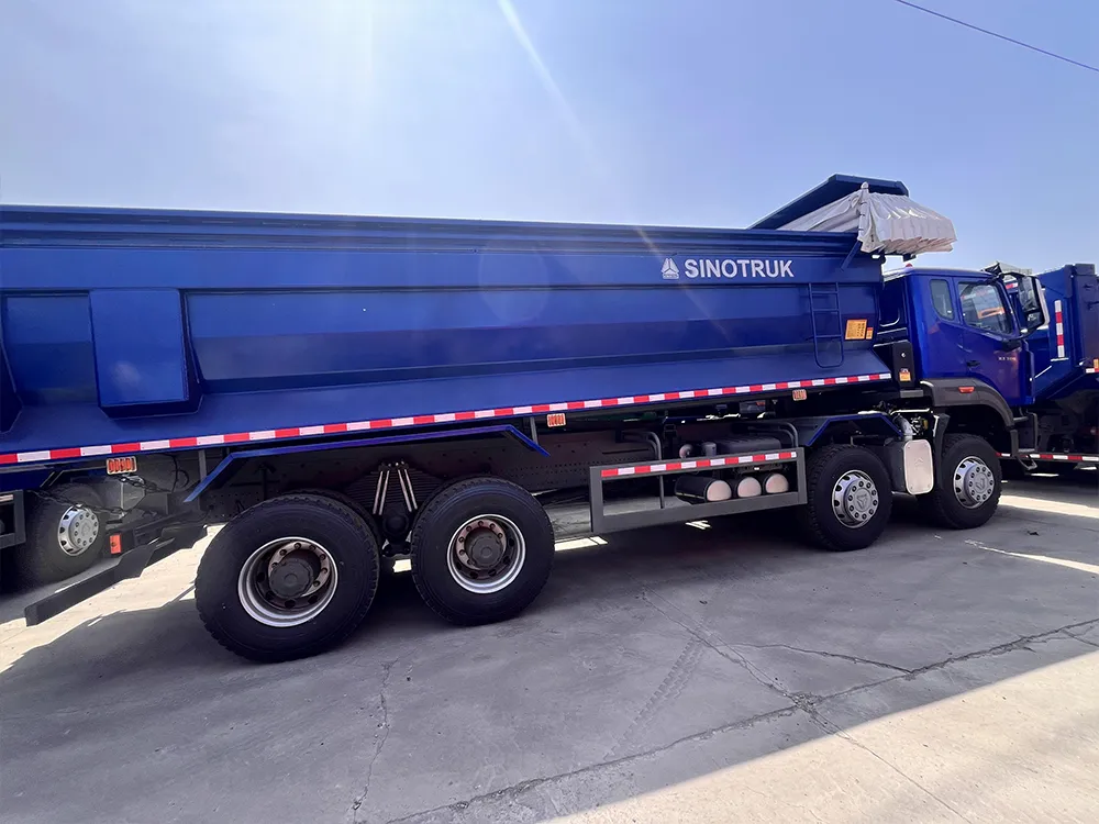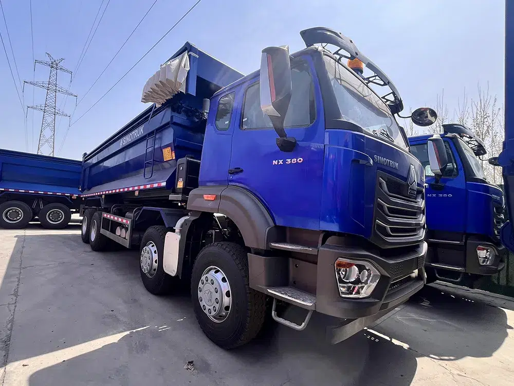 O Caminhão basculante Howo NX 8×4 380hp é usado principalmente para trabalhar no local de construção ou mineração, transporte de dinas, terra, mineral, etc. As luzes de aviso e rede de proteção do farol aumentam a segurança, e todas estas configurações são personalizáveis.