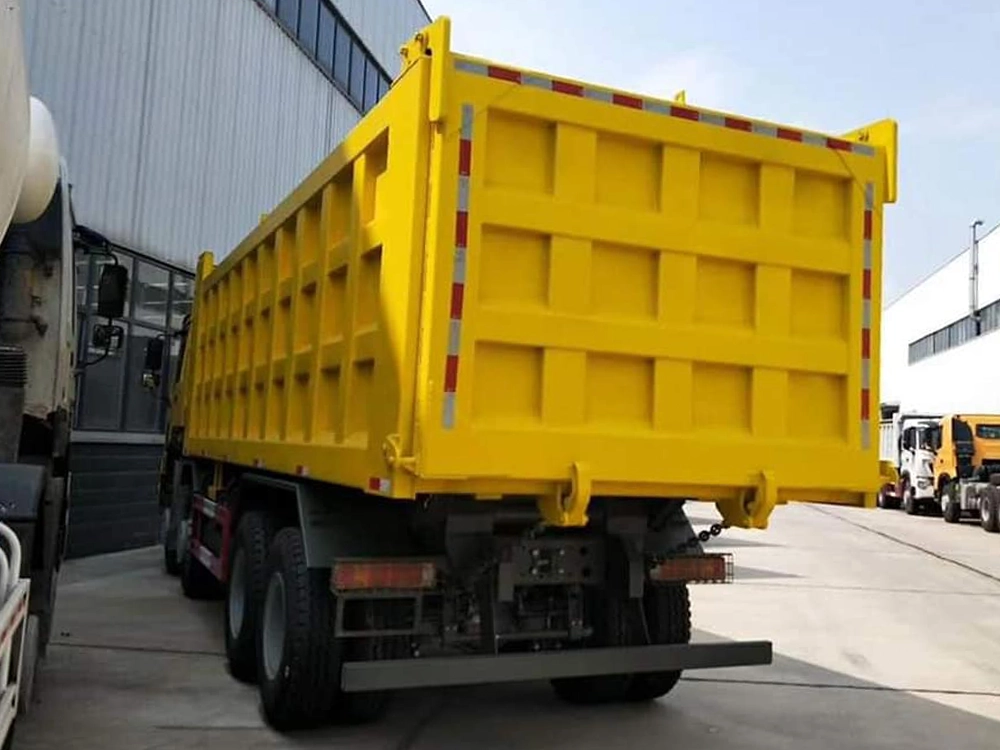 O sistema de tração 8×4 de quatro eixos incorpora um eixo dianteiro VGD95 (capacidade de 9 toneladas) e um bogie traseiro MCX16G (capacidade total em tandem de 16 toneladas). Em conjunto com uma estrutura de chassis reforçada, esta configuração não só reforça a capacidade de carga do eixo traseiro de 16 toneladas, como também melhora a tração em locais de construção irregulares e superfícies ligeiras fora de estrada, minimizando o deslizamento das rodas e adaptando-se a diversos ambientes de trabalho. - Corpo de alta resistência | Dimensões personalizadas e materiais duráveis